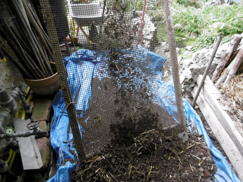 Nach abnehmen der noch nicht verrotteten oberen Schicht (diese kann auf einen neu zu befüllenden Komposthaufen), kann die vebleibene Kompostmasse durchgesiebt werden. Die gesiebte Erde kann als Direktdünger sofort eingesetzt werden, alles was nicht durch das Sieb fällt, kann als Rohkompost auf die Beete gegeben werden oder auf den nächsten Komposthaufen zur Feinkompostierung gegeben werden.